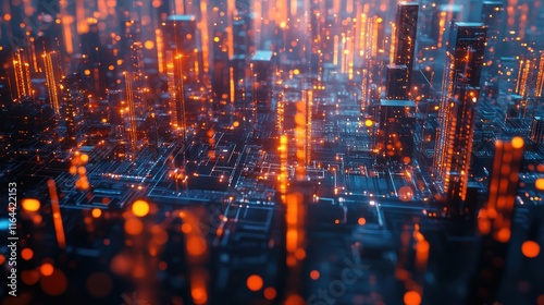 Obraz premium Digital Metropolis: A Futuristic Cityscape of Light and Circuits