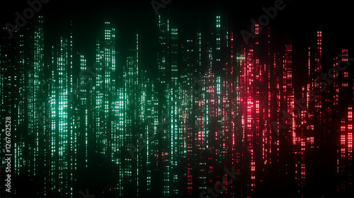 Fototapeta premium Digital Metropolis Data Streams in Binary Code Green and Red Abstract...