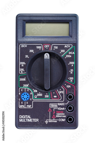 Fototapeta premium Digital multimeter in a black color casing isolated on white background