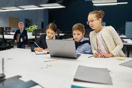 © Nomad_Soul, Obraz premium Digital native students e-learning over laptop computer