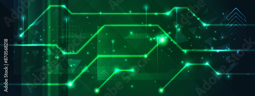© Goldenboy_14, Fototapeta premium Digital neon lines horizontal landscape. Green light design for wallpaper, banner, poster, background.