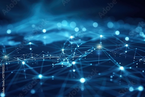 © Rayhanbp, Obraz premium Digital Network: Blue interconnected nodes form a digital web on a blue background