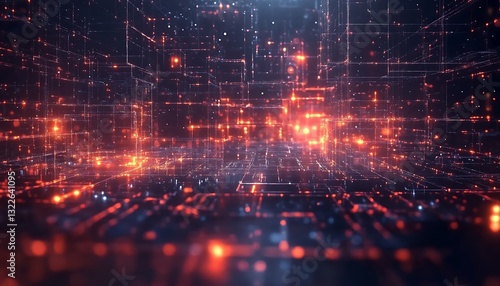© Bernad, Fototapeta premium Digital network, glowing city, data flow, futuristic background