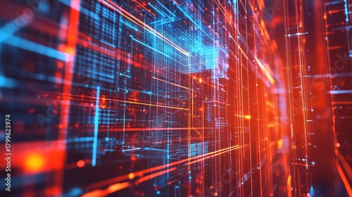 © vectorwin, Obraz premium Digital network grid representing data big data flow