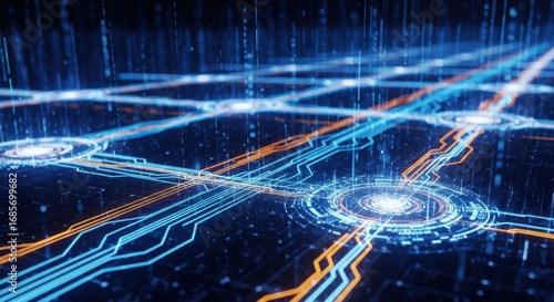 © Moslema, Obraz premium Digital Network Infrastructure Abstract Technology Concept Flow