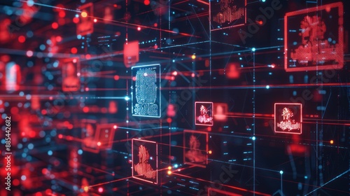 © Anak, Obraz premium Digital Network Interface with Red and Blue Lights