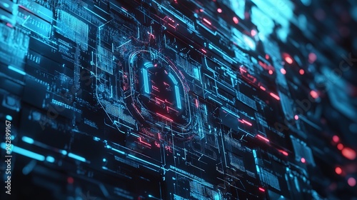 © Zhao Na, Fototapeta premium Digital network security background illustration with shield and lock,generated with AI.