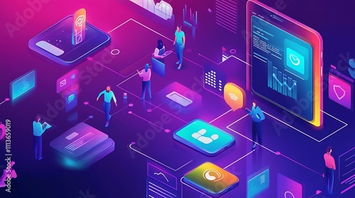 © clara, Fototapeta premium Digital Network with People Interacting with Mobile Apps