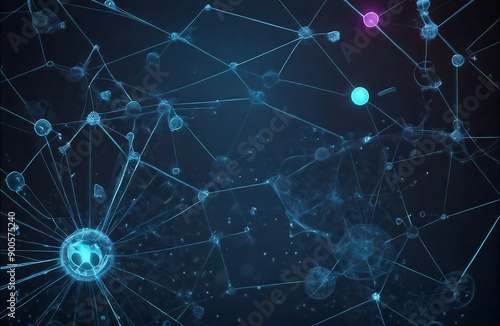 Obraz premium Digital networks with data strings and connection points on a blue background