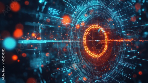 © Nejron Photo, Obraz premium Digital orange abstract element with circular patterns