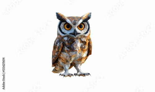 © PixNGrids, Fototapeta premium Digital owl low poly design with geometric wildlife-inspired style