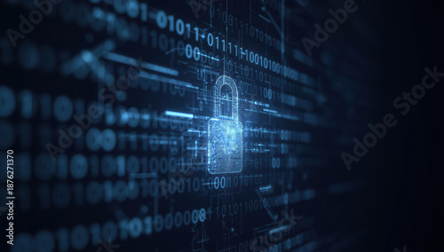 Obraz premium Digital padlock with binary code overlay conveying secure data protection and...