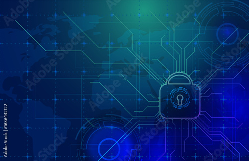 Obraz premium Digital Padlock with World Map – Cyber Security Technology