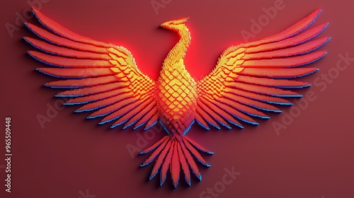 Fototapeta premium Digital Phoenix Rising: of Fiery Bird Formed by Vibrant Pixels
