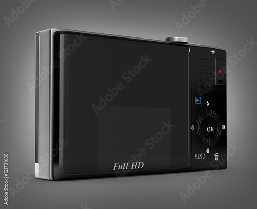© kv_san, Fototapeta premium digital photo camera isolated on grey gradient background 3d