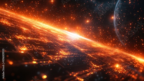 Obraz premium Digital Planet with Glowing City Lights