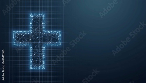 © MD, Fototapeta premium Digital Plus Sign Symbol on a Blue Background Represents Connection Addition Healthcare and Technology Advancements