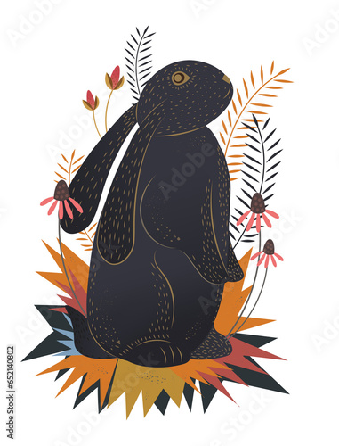 © vectorfusionart, Obraz premium Digital png illustration of bunny and flowers on transparent background