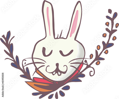 © vectorfusionart, Fototapeta premium Digital png illustration of bunny with twigs and leaves on transparent background