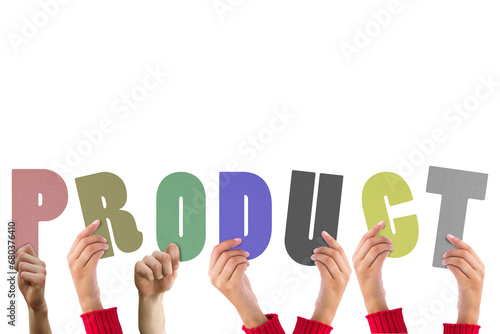 Fototapeta premium Digital png illustration of hands with product text on transparent background