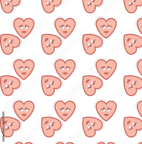 © vectorfusionart, Fototapeta premium Digital png illustration of hearts with faces pattern on transparent background