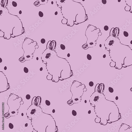 © vectorfusionart, Obraz premium Digital png illustration of rabbits on purple and transparent background