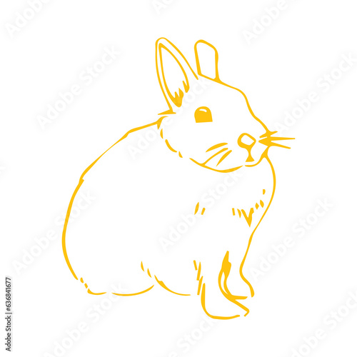© vectorfusionart, Obraz premium Digital png illustration of yellow rabbit outline on transparent background