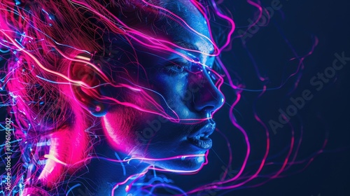 © Timeless Touch, Obraz premium Digital portrait of a person with neon light effects