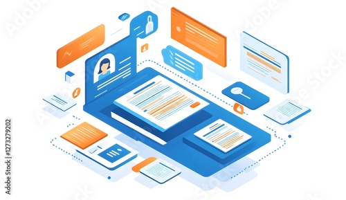 © a muh sakaria, Obraz premium Digital Profile, Documents, Isometric View, Information, Online Application