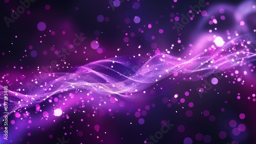 © Aku Creative, Fototapeta premium Digital purple particles wave and light abstract background
