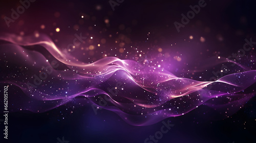 © Planetz, Fototapeta premium Digital purple particles wave and light abstract background with shining dots stars.