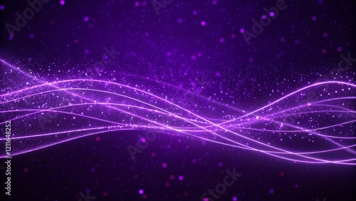 Fototapeta premium Digital purple particles wave and light abstract background with shining dots stars, futuristic glowing motion backdrop for technology, data, science, space, or cosmic themed visuals