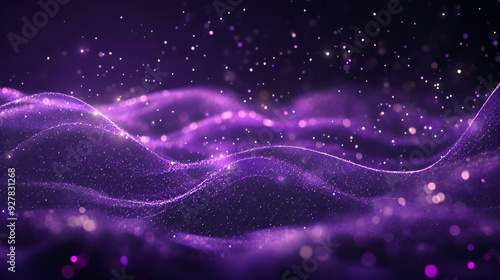 © Waqar, Fototapeta premium digital purple particles wave and light abstract background with shining dots stars Glowing bright advanced futuristic modern dot connectivity concept, Generative AI
