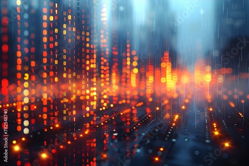Fototapeta premium Digital Rain: Data Stream in Neon Hues. Concept Sci-Fi Aesthetics, Futuristic...