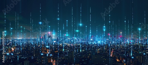Obraz premium Digital Rain Over a Nighttime Cityscape