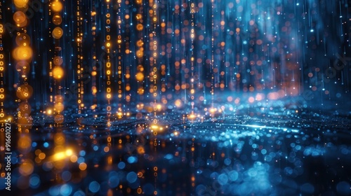 © Amien19, Fototapeta premium Digital Rain with Binary Code and Bokeh Lights