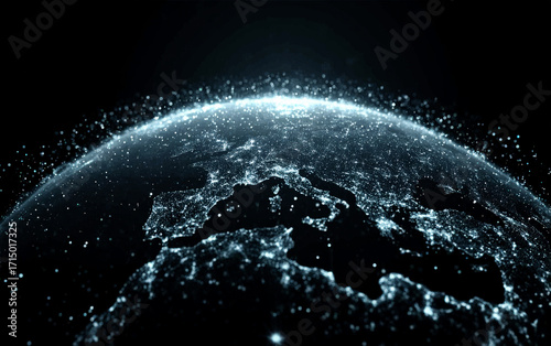 © fanjianhua, Obraz premium Digital representation of the Earth with glowing connections