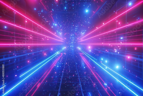 © Dekastro, Fototapeta premium digital retrowave geometric background in neon red and blue