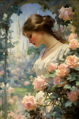 © yonshan, Fototapeta premium Digital roses ink art print pattern flower abstract graphic poster background