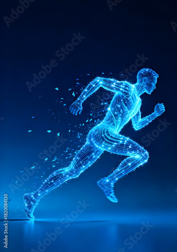 © Jack, Naklejka premium Digital Runner Made of Glowing Blue Lines and Particles