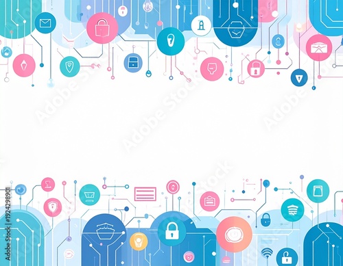 © Jar, Obraz premium Digital security and technology network with interconnected cybersecurity icons and data flow