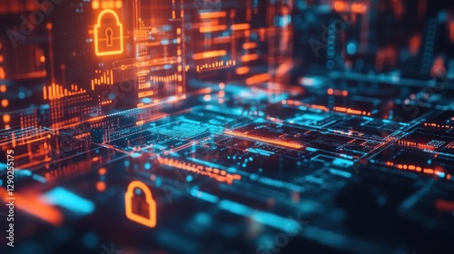 Obraz premium Digital Security Interface with Lock Symbols and Data