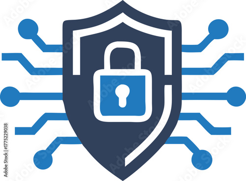 © Shipon, Fototapeta premium Digital security shield incorporates a vibrant blue padlock, symbolizing data protection in the network