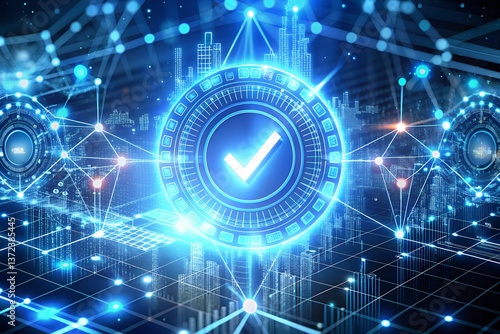 Obraz premium Digital Security Verification – Futuristic Network Authentication Icon