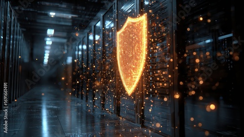 Obraz premium Digital shield in server room, data protection and cyber security concept