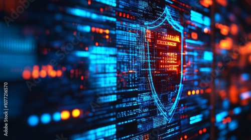 © loxia stock image, Obraz premium Digital shield with glowing code.