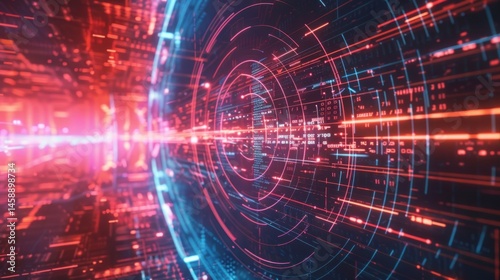 Obraz premium Digital shield with tech lines around it