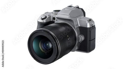 © Sabir, Fototapeta premium Digital single lens reflex camera with large zoom lens attached Isolated on white or transparent PNG.