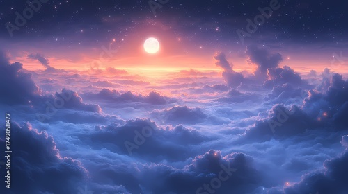 © Nellia, Fototapeta premium Digital Sky Art in Purple and Pink featuring Dreamy Cloudscape with Moon and Stars