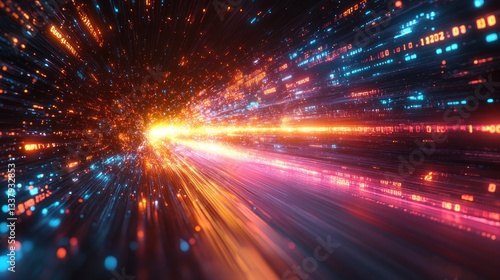 Naklejka premium Digital Speed: A Journey Through Neon Data Streams